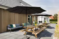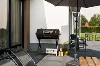 Außenbereich: Große Terrasse mit Grillplatz / Außenküche, Gartenmöbeln, Sonnenliegen und Loungesofas. Kinderspielgeräte wie Trampolin, Schaukel usw. Steckdose zum Aufladen von Elektrofahrrädern.