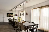 Großer offener Wohnraum: Mit dem großen Esstisch in der Mitte, einem Wohnbereich mit Smart-TV und der großen offenen Küche. Durch die doppelte Anordnung von Induktionskochfeld, Geschirrspüler und Backofen ist dies praktisch und einfach zu handhaben. Es gibt eine separate Kaffee- / Tee-Ecke mit Filterkaffee, Nespresso und Wasserkocher. Der doppelte Hochkühlschrank, von dem einer über ein Gefrierfach verfügt, bietet beispielsweise Platz für eine Wochenendversorgung mit frischen Produkten und kalten Getränken. In der Küche finden Sie auch alles, was Sie brauchen und natürlich eine große Auswahl an großen, kleinen Pfannen und Töpfen.
