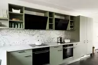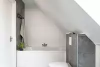 Einer der Schlafflügel hat einen separaten Eingang und in diesem Bereich befinden sich das Studio, ein Schlafzimmer und ein Badezimmer mit WC, Dusche und Waschbecken, die auch für Rollstuhlfahrer zugänglich sind. Das Studio ist mit einer bequemen Bank, einer Mini-Speisekammer mit Kühlschrank sowie Kaffee- und Teezubehör und einem Smart-TV ausgestattet. Eines der Schlafzimmer hat Zugang vom Wohnzimmer. In diesem Schlafzimmer wurde eine Kinderspielecke eingerichtet.