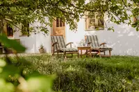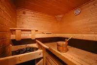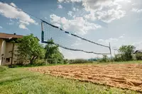 Finnische Sauna mit Ruheraum und neben dem Beachvolleyballplatz gibt es noch die große Wiese, das Hühnerhaus, Sandkasten und Schaukel, Lagerfeuer, den kleinen Bach und den Weiher...Einfach viel Platz und Ruhe!
