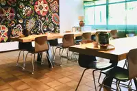Der Garten und das umliegende Grundstück von Wildnishaus haben eine offene Struktur, die mit dem Kurpark verwoben ist. In diesem Kurpark gibt es ein Labyrinth, einen Bouleplatz, einen Skatepark und eine Kunststrecke. Auf der anderen Seite der Brücke gibt es auch einen Spielplatz, einen Minigolfplatz und eine Musikkapelle, in der im Sommer kleine Konzerte gegeben werden.Standort Wildnishaus: