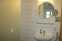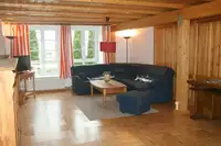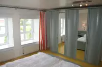Duschbad/WC. 5 Schlafräume: 2x Doppelzimmer (Bett 1.80 m x 2,00 m, Babybetten stellbar). 3x "Kojen" Zweibett-Zimmer (Bett je 0.90 m x 2,00 m; ohne Kleiderschrank, Zimmerhöhe 1.90 m, ideal als Kinderzimmer).