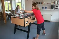 Indoor-Spielhalle mit Tischtennis, Billard und Tischkicker im Haus. Badhocker, Babybetten und Hochstühle leihbar. Spielplatz, Bolzplatz und Volleyball auf nahem Campingplatz. Ponyreiten, Kutschfahrten und Kinderradverleih in der Umgebung.