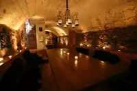 Der Ritterkeller inkl. Rittermahl ist hierbei ein "Muss" für viele Gruppen. Der Ritterkeller befindet sich in den Kellergewölben des Hauses. An einer langen schweren Eichentafel können sie zünftig speisen, während im Kamin das Feuer zündelt. Eine Musikanlage mit Radio, CD und auch Rittermusik, runden das Ambiente ab.
