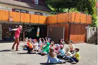 Außerdem kann man Spielgeräte, wie Volleyball und Netz, Softfußball, Fußball, Basketball, Schachfiguren, Federball und Tischtennisschläger unentgeltlich leihen. Für die Kleinsten gibt es einen Spielplatz mit Sandkiste, Trampolin, eine Rutsche. Für die Großen und die "Ganz Großen" befindet sich unweit des Hauses ein Bolzplatz mit 2 Fußballtoren (5 x 2 Meter ).