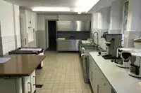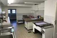 Unser freundliches und gut ausgestattetes Selbstversorgerhaus mit 34 Betten in 15 Zimmern - immer nur von einer Gruppe buchbar (1-4 Betten/Zimmer) liegt im Pfälzer Wald nahe der französischen Grenze, am Rande des Kurorts Bad Bergzabern direkt am Kurpark.Eine geräumige und gut bestückte Küche (u.a. mit Mikrowelle, Kaffeemaschinen, Industriespülmaschine, leistungsstarkem Herd mit Schnellkochplatte, Backofen, Schwenkpfanne, drei Kühlschränken, zwei Gefriereinheiten) finden Sie im Untergeschoss. Ein Lastenaufzug verbindet den Speisesaal mit der Küche.