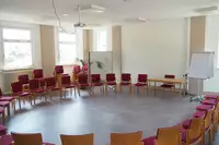 Ein großer Tagungssaal mit Beamer und ein kleiner Saal (mit Erweiterungstür zum Tagungsraum) befinden sich im Erdgeschoss.