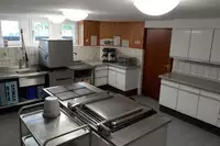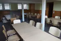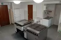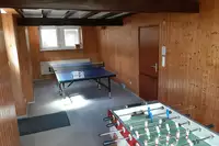 Eine geräumige und gut bestückte Küche und den Speisesaal finden Sie im Untergeschoss. Im Nebenraum stehen ein Kicker und eine Tischtennisplatte.