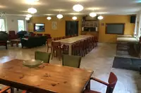 Im Hauptgebäude sind 10 Doppel-, Zwei- und Dreibettzimmer. Die 9 Wanderhütten sind eingerichtet mit 1 Doppelbett und 2/3 Einzelbetten. Wir verfügen über einen geselligen Festsaal von ca. 140 m² mit einem kanadischen Bullerjan (Holzofen mit Beinamen ”der Motor”).