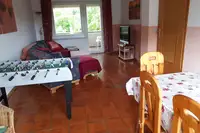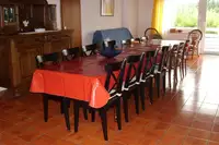 Sehr gut geeignet für Familientreffen, da ein großer Gruppenraum mit gut ausreichend Geschirr zur Verfügung steht. Es gibt viele Schlafräume, aber auch weitere Wohnzimmer als Rückzugsort. Schön war auch die Möglichkeit der vielen Bäder. Ein großes Außengelände mit Tischtennisplatte und großer Terrasse mit Grill rundete die ganze Anlage ab. Wir waren sehr gern dort.