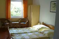 Unser Ferienhaus (Haushälfte eines Resthofes) ist ca. 275 qm groß, zweckmäßig ausgestattet, 8 Schlafzimmer, Wohnzimmer ca. 25 qm, 5 Badezimmer, ein Gäste-WC, eine große Diele ca. 50 qm und eine große Gruppenküche und 2 kleine Küchen. Es ist für bis zu 16 Personen ausgelegt.Der Bereich im Erdgeschoss (2 Schlafzimmer, Badezimmer, Wohnzimmer und Diele ist bis auf zwei kleine Stufen im Eingangsbereich barrierefrei. Des Weiteren gehört zu dem Haus ein großer Balkon, eine Loggia und ein Gästegarten mit Grillmöglichkeit und Lagenfeuerplatz.