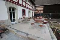 12 individuell eingerichtete Zimmer, jeweils ausgestattet mit Dusche & WC. Saal für Veranstaltungen bis zu 40 Personen.Große Selbstversorgerküche mit zwei 4-flammigen Herden mit Backofen, Gastro-Spülmaschine und Profi-Spülbecken, Kühl- und Gefrierschränken, großzügigen Anrichten aus Edelstahl und Gastro- Kaffeemaschine. Alternativ vermitteln wir Ihnen gern einen der hervorragenden Cateringanbieter der Region. Am Haus finden Sie bis zu 16 Parkplätze.