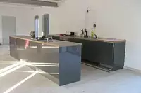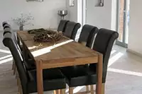 Unser Angebot für Familien und Gruppen umfasst Gemeinschaftsraum für 40 Personen + Terrasse und Garten, große offene Küche mit Speisetafel, Übernachtung in 5 separaten, voll ausgestatteten Zimmern. Unsere Wohnzimmer verfügen über Kamin, Bequeme Sitzgelegenheiten für 20 Personen. Der Essbereich ist ausgestattet mit Sitzmöglichkeiten für 20 Personen an großer Tafel und Kinderhochstuhl.Küchenausstattung: Kochutensilien, Kaffeemaschine, Gasbrenner, 4- Plattenherd, 2-Plattenherd, Kochzeile, Geschirrspülmaschine, Kühlschrank, Gefrierfach, Kochfeld und einem Backofen. Jedes Apartement verfügt über ein eigenes Badezimmer mit Dusche und WC.