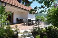 36 Betten in sieben Ferienwohnungen, zwei davon 160 m² groß, in zwei Ferienhäusern, mit weitem Panoramablick über das Ehrenbachtal zum Walberla-Massiv.Freizeit