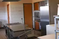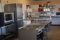 Es gibt eine gut eingerichtete Gewerbeküche mit: