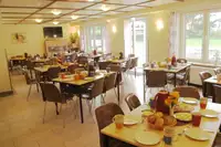 Sehr großzügiges Areal, gepflegt und sauber. Super nettes und hilfsbereites Personal, gutes Essen in ausreichender Menge, flexible und hilfsbereite Leitung. Für Probenfahrten aufgrund des großen Saals mit Bühne und angrenzendem Clubraum ideal.