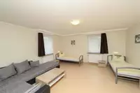 Tolles Gästehaus in wunderschöner grüner Lage. Das Gelände ist weitläufig; es gibt einen Spielplatz, ein Fußballfeld, Tischtennisplatten und einen Lagerfeuerplatz. Unser großzügiges 2-Bettzimmer war mit Kühlschrank, TV und einem gemütlichem großen Sofa ausgestattet. Die Mitarbeiter waren sehr freundlich. Der Badesee liegt nur wenige Gehminuten entfernt.
