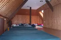 2 Schlafräume (12 bzw. 16 Betten) - 1 „Schnarchkammer" (4 Betten) - 3 Doppelzimmer (je 2 Betten) sowie 1 Doppelzimmer (2 Betten) für behinderte Personen - 1 großer Aufenthaltsraum (40 Plätze) - 1 kleiner Aufenthaltsraum (15 Plätze) - 1 „Stiller Raum" (als Kapelle oder für Meditationen) - 1 Mehrzweckraum - 3 Stockwerke von außen erreichbar (allerdings zum Teil steil). Im Außenbereich: 1 Treppenschrägaufzug/Plattformlift für Rollstuhlfahrer zum 1. Obergeschoss.Freizeit