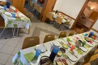 Freizeitheim (Altes Pfarrhaus):38 (40) Betten, Zimmer mit Waschbecken; 7 Duschen, Aufenthaltsraum, Relaxraum, 2 Speiseräume; die geräumige Freizeitküche bietet viel Entfaltungsspielraum für die »Gruppenköche«. Sie ist mit gr. Kühlschrank, Gefriertruhe, Kippbratpfanne, Elektroherd, Mikrowelle, Heißluftofen, Geschirrspüler und einem großen Spülbecken ausgestattet. Tischkicker, Tischtennisraum, einzelne Fahrräder (DDR-Modelle).