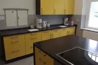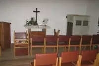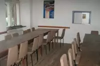 Selbstversorger-Küche: E-Herd mit Cerankochfeld und Backherd, 2 Kühlschränke mit Gefrierfach, Spülmaschine, 2 Kaffeemaschinen, Toaster, für 50 Personen: Geschirr, Wassergläser, Becher, Besteck und Kochutensilien, Töpfe, Pfannen. Separate Spülküche, Speiseraum mit Durchreiche, Gemeinderaum/Gruppenraum mit Altar und E-Orgel, 2 Duschräume, Waschmaschine. Im Dachgeschoss: 2 Waschräume mit Not- WC, kleine und große SitzeckeFreizeit