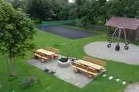 Spielwiese, Spielplatz, Volleyballplatz,2 Schaukeln, 2 Federtiere, 1 Drehschaukel,