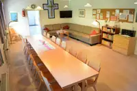 Das Freizeitheim ist freundliche und pragmatisch eingerichtet. Es liegt nur 100 m hinter dem Deich, direkt an der Ostsee. Am Strand befindet sich eine DLRG-Station, die in den Kernzeiten in den Sommerferien besetzt ist. Das Haus eignet sich besonders für Kinder- und Jugendgruppen. Die Küche ist ausgestattet mit einem Großküchenherd, Mikrowelle, Kühlschrank, 2 Backöfen, Geschirrspülmaschine, Kühlschrank und Gefrierschrank.Freizeit