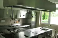 Große Selbstversorgerküche mit separatem Spülraum. Es besteht die Möglichkeit, Essen von unseren Partnern liefern zu lassen (Brötchendienst, warmes Essen ab 4 € pro Person/Mahlzeit).Ein "Leiter"-Zimmer mit zwei Einzelbetten und angrenzender behindertengerechten Dusche/WC. Absolut ruhige Lage, bei 2 km bis zur Autobahnauffahrt Schloss Burg/Wermelskirchen A1.