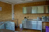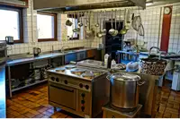 Küche großer Traktfür ca. 90 Personen, 5 Plattenherd + Backofen, Spülmaschine, Kippbratpfanne, Mikrowelle, Kühlschrank, Tiefkühltruhe