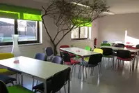 Ansprechendes Gruppenhaus, integriert auf naturbelassenen Campingplatz mit Strandbad, tollen Wanderwegen, Radfahrtouren, Etagen- und Einzelbetten, WLan, Gruppentische, Raumteilung möglich, auch für Yoga, Spielekreis, Entspannung etc. geeignet, kleine Teeküche, keine Kochmöglichkeit.Freizeit