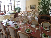 Der Speisesaal mit herrlichem Blick über das Tal und auf das Benediktinerkloster bietet Platz für bis zu 65 Personen. Für unsere Hotelgäste bieten wir auch Halb- oder Vollpension an.