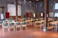In unserem Gästehaus stehen 45 Zimmer zur Verfügung, davon 19 Doppel- bzw. Mehrbettzimmer und 26 Einzelzimmer. Dem klösterlichen Rahmen entsprechend sind die Zimmer schlicht eingerichtet. Bewusst verzichten wir auf Radio, TV, Telefon und Internetanschluss im Zimmer. Fünf Doppelzimmer und vier Einzelzimmer verfügen über WC/Dusche. Drei Einzelzimmer haben ein WC. Die übrigen Zimmer haben ein Waschbecken im Raum und teilen sich Dusche und WC auf der Etage.Bemerkungen