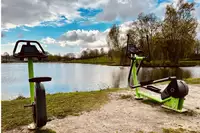 Erlebnisspielplatz für große und kleine Kinder, Matschanlage, Outdoor Fitnessgeräten, Beachvolleyballfeld, Grillplatz, Sportplätze (2 Fußballplätze (1 Kunstrasenplatz), einer mit Leichtathletikanlage), Fitnesscenter, Paddel u. Pedalstation 10 km entfernt (Aurich/Ems-Jade-Kanal).Im Übernachtungspreis ist die freie Nutzung der beiden Sportplätze, des Badesees, der Mehrzweck- und Veranstaltungshalle (Sporthalle) nach Verfügbarkeit und des WLANS enthalten.