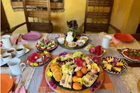 Hoch über den Dächern Himmelpforts befinden sich in der 4. Etage des ehemaligen Speichers individuell und liebevoll eingerichtete Gästezimmer mit großer Küche und Gemeinschaftsbädern. Wer nicht ganz so viele Treppen steigen möchte, ist in den beiden Ferienwohnungen in der 2. Etage gut aufgehoben.Kochen mit Freund*innen, Familie oder im Team – wir laden unsere Gäste in die Gemeinschaftsküche der 4. Etage ein.