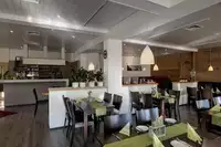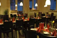 Ein schöner Speisesaal mit Bar für 66 Personen, der auch als Seminarraum genutzt werden kann ist vorhanden. Eine hochwertige Gastronomieküche sowie Geschirr und Tischdecken für Festlichkeiten stehen zur Verfügung.