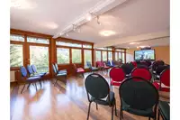 Gegenüber am Hang stehen Ihnen optional für Ihre Veranstaltung zwei Räume mit 60 m² und ein Raum mit circa 90 m² zur Verfügung. Des Weiteren gehören zum Seminarhaus eine Cafeteria und eine Selbstversorgerküche.Highlights des Gästehauses Löwenherz: