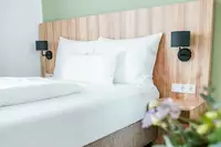 2/2 Alle Zimmer sind mit mordenen Boxspringbetten ausgestattet. Bettwäsche und Handtücher sind im Preis bereits inklusive.