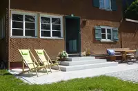 Vor dem Haus stehen allen Gästen eine große Sonnenterrasse sowie ein Spielplatz zur Verfügung. Parkplätze sind ausreichend vorhanden.