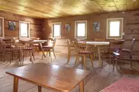 Im Aufenthaltsraum in der gemütlichen Holzstube bieten zwei große runde Tische sowie ein kleines Sofa nicht nur Platz zum Essen sondern auch für gesellige Runden. Verschiedene Gellschaftsspiele gehören ebenfalls zur Ausstattung.