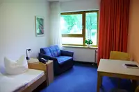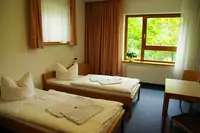 Zur Unterbringung der Gäste stehen Ihnen 14 Einzelzimmer, 14 Doppelzimmer und 1 behindertengerechtes Zimmer mit jeweils eigenem Telefon, Dusche und WC zur Verfügung. In den Einzelzimmern besteht auch die Möglichkeit zur Aufbettung in einem bequemen Liegesessel.Die Gesamtkapazität beträgt 44 Betten zzgl. 14 Aufbettungen. Die Obergeschosse der Tagungsherberge können mit einem Aufzug erreicht werden. In unserem gemütlichen Clubraum können Sie Fernsehgerät, Kaffeeautomat und Kamin nutzen. Als Tagungstechnik steht Ihnen zur Verfügung: Overheadprojektor, TV, Beamer, Flipchart und Moderationstafeln. Die Tagungsräume verfügen über einen Zugang zum Internet.