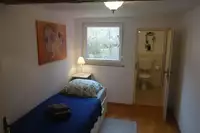 Insgesamt vermieten wir 5 Zimmer, davon haben 3 ein eigenes Badezimmer und 2 Zimmer teilen sich ein großes Bad.Alle unsere Zimmer sind 2016 hell und freundlich gestaltet worden und befinden sich in ruhiger Lage mit angenehmem Ausblick. Sie müssen auf keinerlei modernen Komfort verzichten.