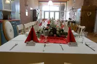 Es war für uns ein rundum gelungenes Familientreffen im Gästehof Apolony. Bis zum Schluss konnten wir pandemiebedingt nicht ganz sicher sein, ob wir – aus 7 verschiedenen Haushalten kommend - tatsächlich zusammen 4 Tage verbringen durften. Aber geimpft und getestet konnten wir die Zeit genießen und am großen Tisch gemütlich zusammen essen und klönen. Das Wetter hat zum Glück mitgespielt und der Garten und das Haus sind wirklich ideal für Familien mit Kindern. Für alle das Passende: Bewegungsmöglichkeiten oder Rückzug. Unsere Enkel (und die Großen) waren begeistert und wollen unbedingt hier bald wieder zusammen Zeit miteinander verbringen.