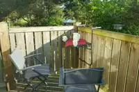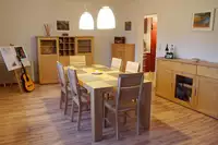 Terrasse mit Gartenmöbeln, Sonnenliegen, eigener Spielplatz mit Geräten, Kinderhochstuhl, Kinderbett, kleine Bibliothek, Spiele, Staffelei und Malsachen, 5 kostenlose Fahrräder, Bügelbrett und -eisen, Fön, Radio mit CD und USB, Gitarre, reichlich Schränke u. Geschirr