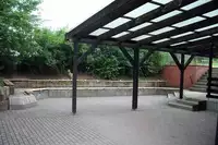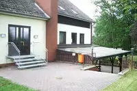 Haus liegt (wie die Adresse schon sagt) Außerhalb, einfach toll! Optimal für Familienfreizeit. Auch bei schlechtem Wetter genug Platz. Überdachte Terasse mit offenem Kamin.
