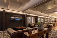 In unserem modernen, attraktiven Wohnzimmer mit Kaffeemaschine und zwei großen Flachbildfernsehern können Sie angenehme gemeinsame Momente erleben.