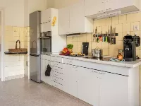 7/19 die große Küche ist gut ausgestattet mit Mikrowelle, Ofen, 2 Kühlschränken, Mikrowelle, 2 Kaffeemaschinen, Wasserkocher, Pürierstab, Küchenwaage, Toaster und allem was man zum Kochen braucht.