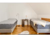 - Zimmer 2: mit zwei Einzelbetten (als Doppelbett zusammenstellbar) und Schlafsofa (nur für Kinder)