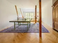 18/19 In der Diele kann gechillt und Tischtennis gespielt werden. Es gibt außerdem ein Bügeleisen/Bügelbrett, dass von den Gästen genutzt werden kann.