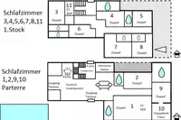 22 Betten in 1 EZ, 9 DZ und 1 MBZ mit 3 Betten