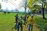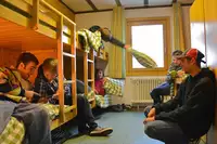 9 Mehrbettzimmer, 2 Leiterzimmer mit eigenem Bad, Küche mit Gastro-Geräten, großer Gruppen- und Speiseraum, kleiner Aufenthaltsraum mit Fernseher. Schönes weitläufiges Gelände mit traumhaftem Ausblick. Feuerstelle, Beachvolleyball, Bolzplatz, Skateboard Minirampe, Dirt-Bike Park, Streetball, Pferderanch, Streichelzoo.Freizeit