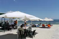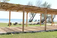 Der kommunal bewirtschaftete Strand ist gut ausgestattet (Umkleiden, Sanitär, Cafés, Restaurants), auch für Rollis. Vorbildlich! Wer mal wechseln möchte, besucht alternativ den barrierefreien, großen Privatstrand der Gasteltern im übernächsten Küstenort ca. 20 km entfernt. Immer gilt: Die Nutzung des Strandes wird mit dem Erwerb eines Getränkes abgegolten. Gegenwert sind eine täglich gepflegte Infrastrunktur und ein gekühltes Getränk...
